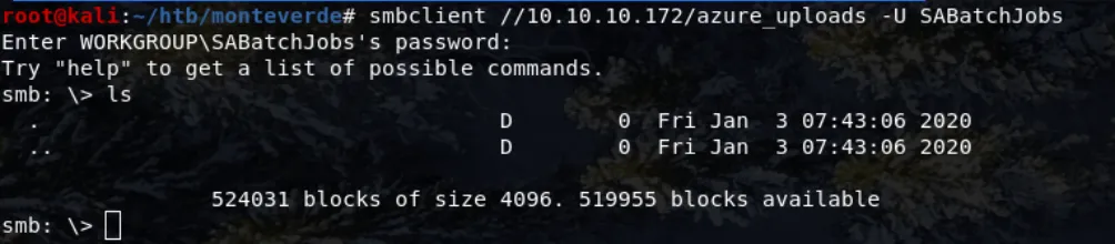 smbclient -L 10.10.10.172 -U SABatchJobs