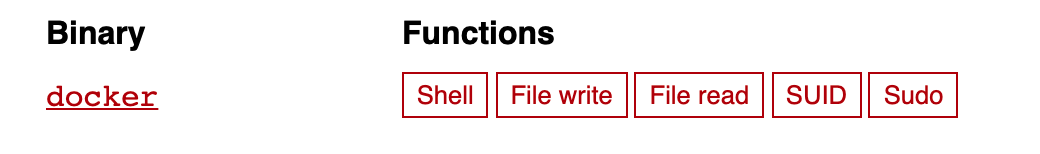 The Docker gtfobin provides ways of escalating priveges with docker. docker gtfobin