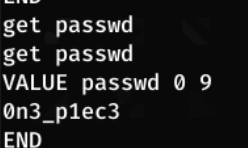 Dumping the cache, we see a user and passwd key. To view these, we can use get <item>