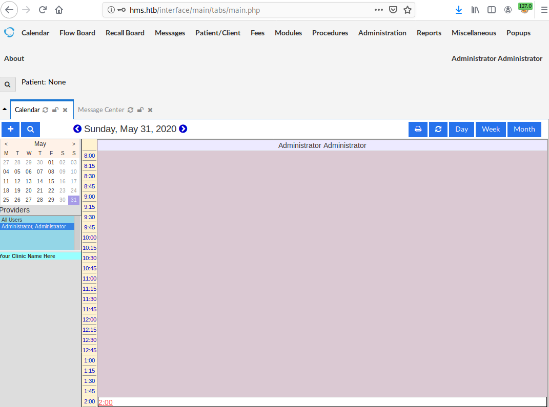 1. Navigate to HMS.htb/portal/add_edit_event_user/php?eid='.