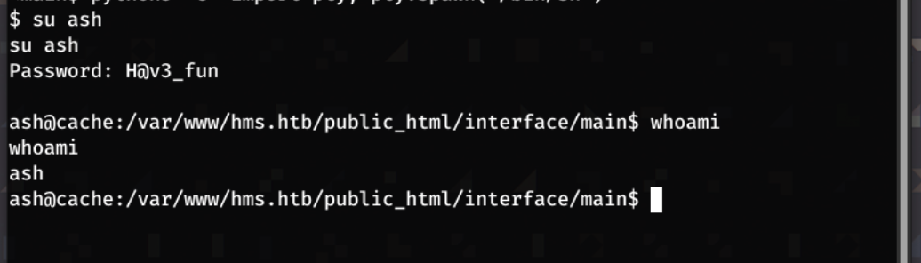Using the password I found earlier. functionality.js I switched user to ash.:
